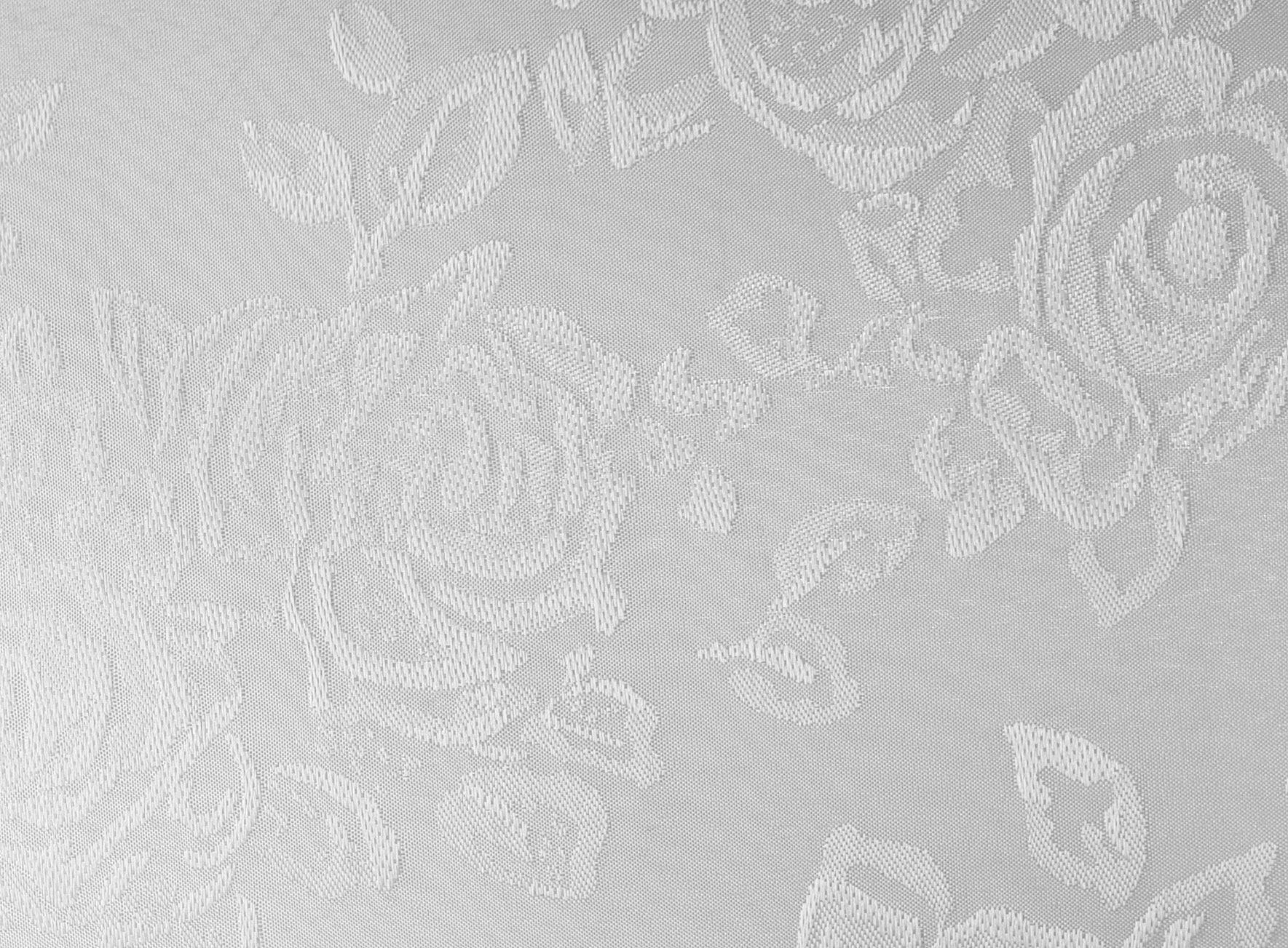 Satin Damast, Rosendekor, weiß glänzend, 2-fach durchgehend gesteppt, Volant