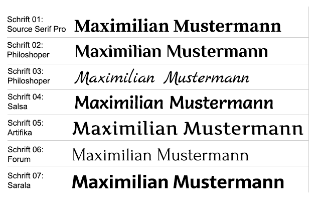 Sieben Gravur-Schriftarten stehen Ihnen zur Auswahl.