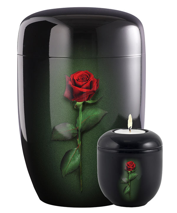 Urnenset bestehend aus Schmuckurne 2/31F (Naturstoff) und Gedenklicht P31FL (Porzellan)