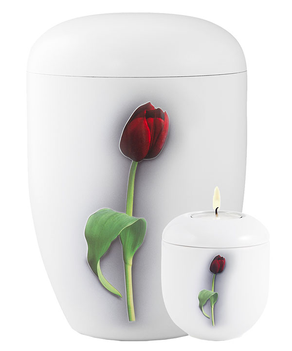 Urnenset bestehend aus Schmuckurne 2/32FW (Naturstoff) und Gedenklicht P32FWL (Porzellan)