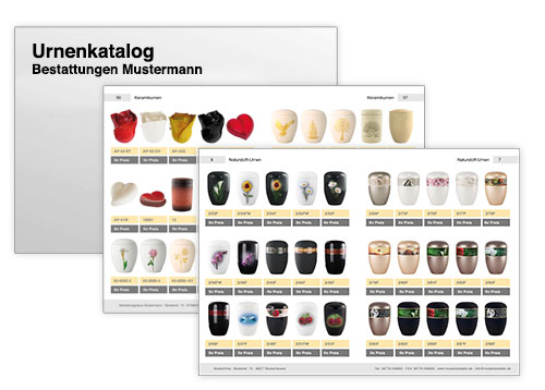 Wir möchten Sie bei der Endkundenberatung in der Urnenauswahl unterstützen. Erstellen Sie sich einen eigenen PDF-Urnenkatalog mit Ihren Verkaufspreisen oder nutzen Sie unsere Software: Den Urnenfinder.